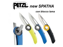 Navaja mosqueteable SPATHA, hoja lisa y dentada que permite cortar facilmente las cuerdas y cordinos, se puede abrir mediante la muesca de la hoja o con la rueda dentada, bloqueo en la posicion abierta, hoja de acero inxidable. Peso 43 g.