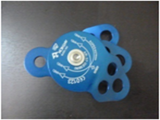 Polea doble RESCATE PULLEY CASTOR, para cuerdas hasta 16 mm en duraluminio, con tres puntos de anclaje. Para izado de cargas pesadas, placas laterales m贸viles Cap. 48 KN EN12278 CE 0123