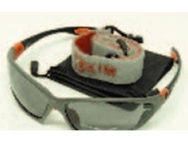 Gafa de seguridad, lente oscuro, anti empa帽ante,con banda, proteccion contra rayos UVA 60 % y UVB 95 % ANSI Z 87,2